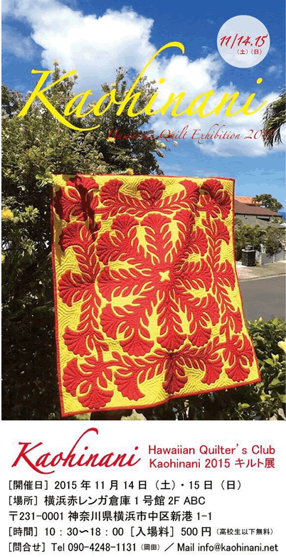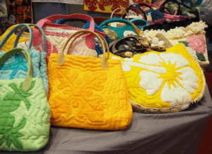 カオヒナニインストラクターが制作したバッグなどの完成品、カオヒナニインストラクターセレクトのハワイで購入した布やハギレ、カオヒナニインストラクター プロデュース2016年カレンダー